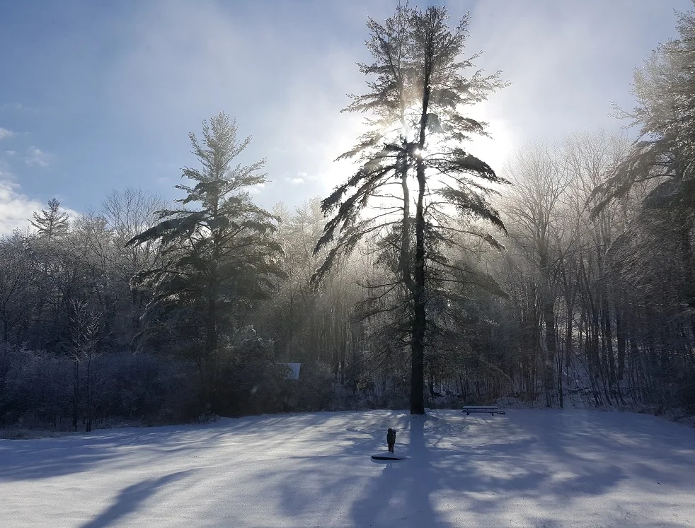 Today’s story: here is the photo that I posted on January 1st (I really did have great plans for January!) of the trees and the light in my backyard. I thought it would make a wonderful black and white quilt of some sort.